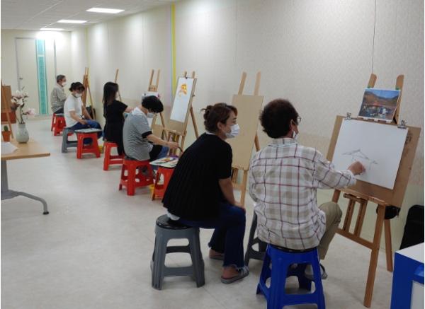 도서관은 4년째 군민을 대상으로 수채화 아카데미를 운영하고 있으며 올해 수업은 매주 월요일 김충호 교수의 지도로 진행됐다.