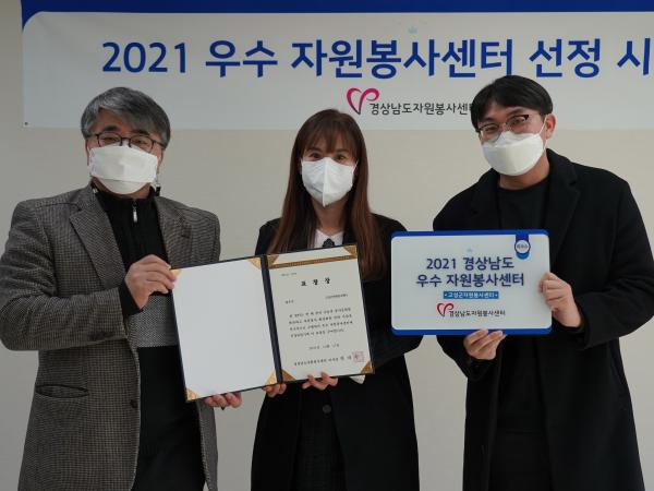 고성군 자원봉사센터는 12월 27일 경상남도자원봉사센터에서 열린 ‘2021년 우수시군 자원봉사센터 시상식’에서 도내 1위로 최우수 센터에 선정돼 최우수상과 시상금 100만 원을 받았다.