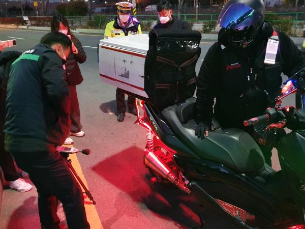 통영시, 통영경찰서, 한국교통안전공단이 지난 2021. 12. 27. 광도면 일대에서 불법 이륜자동차 운행에 대해 현장단속을 실시했다.