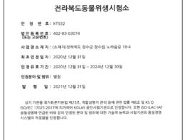 전라북도 동물위생시험소가 지자체 축산물 검사기관(17개소)으로는 최초로 동물용 의약품 잔류물질 시험 분야에서 사후평가 적합 판정을 받았다.