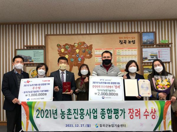 칠곡군농업기술센터는 농촌진흥사업 종합평가 장려상, 우수팀(식량작물) 수상, 농업기계 안전교육 우수기관 선정 등 많은 상을 수상해 풍성한 성과를 거두는 한해가 되었다.