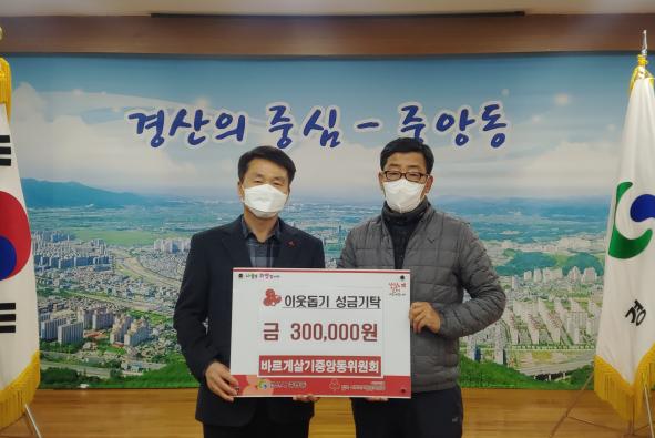 바르게살기운동 중앙동위원회는 '희망2022 나눔캠페인'에 동참하고자 27일 이웃돕기 성금 30만 원을 중앙동행정복지센터에 기탁하였다.