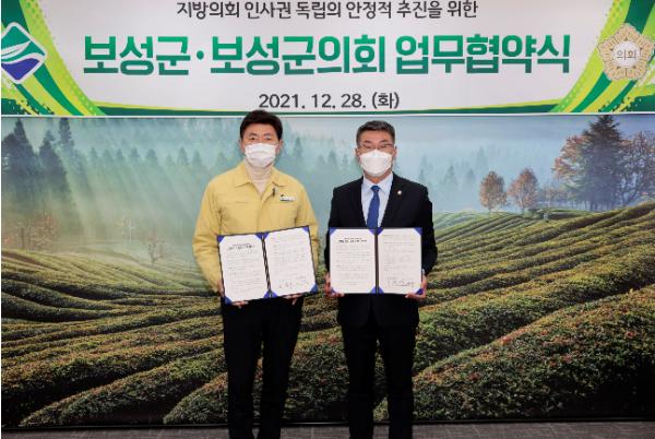 보성군의회와 보성군은 지난 28일 지방의회 인사권 독립에 따른 인사운영 등 업무 전반에 대해 협약을 체결했다.