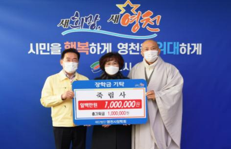 지난 28일 죽림사에서 100만원, 북안골프모임에서 200만원, 영천시새마을부녀회에서 200만원, 공정리 한국폴리텍대학 로봇캠퍼스 교수가 100만원의 장학금을 (재)영천시장학회(이사장 최기문)에 기탁했다.
