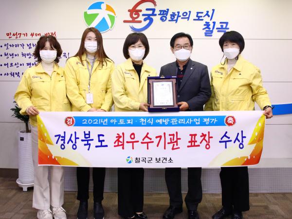 칠곡군보건소는 지난해부터 장기화된 코로나19에 따라 선별진료소 및 예방접종센터 업무를 병행하면서도 지역주민의 건강증진을 위한 다양한 보건사업을 추진하여 2021년 모바일헬스케어사업, 심뇌혈관질환예방관리사업, 아토피, 천식예방관리사업에서 기관상을 수상했다.