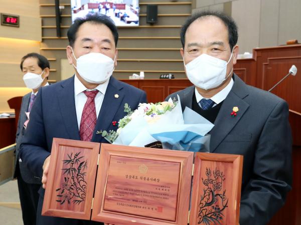 '의정봉사상'은 지방의회 발전과 주민의 삶의 질 향상을 위해 적극 의정활동을 펼친 의원에게 수여하는 상이다.