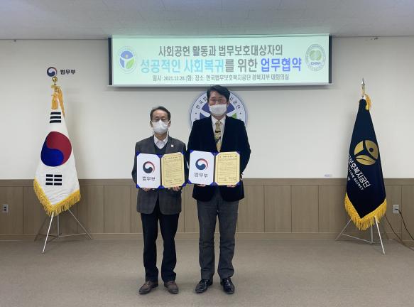 한국법무보호복지공단 경북지부(지부장 임동문)는 2021년 12월 28일 지부 2층 대회의실에서 한국수력원자력㈜예천양수발전소(소장 박승철)와 법무보호대상자의 성공적인 사회복귀를 위한 업무제휴 공동 협약을 체결하였다.