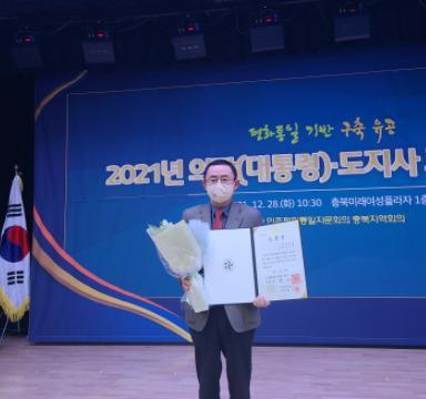 특히 제18기부터 현재까지 보은군협의회 자문의원으로 역임하면서 국민적 통일 공감대 형성을 위한 통일강연회, 통일후계세대인 지역청소년 통일교육 및 통일현장체험, 지역봉사 사업 등 각종 평화통일 관련 사업에 기여한 공을 인정받았다.