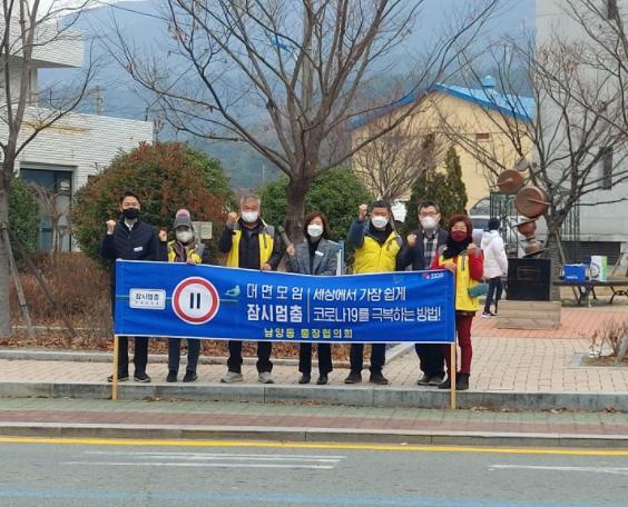 사천시 남양동통장협의회 통장들과 남양동 행정복지센터 직원들이 지난 24일 남양중학교 앞과 미룡항 및 대포항 일원에서 코로나19 예방 가두 캠페인을 펼쳤다고 29일 밝혔다.
