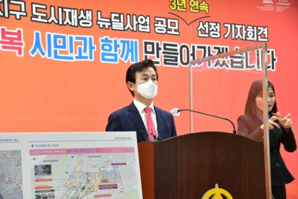 2021년에는 ▲중앙지구 도시재생 뉴딜사업에 180억 원 ▲위험건축물 특별공모 사업에 60억 원 확보로 옛 영남백화점 부지에 다목적 아동·복지센터 건립 추진 ▲스마트시티 솔루션 확산사업 24억 원 확보로 스마트시티 조성사업 추진 ▲취약지역 생활여건 개조사업에 15억 원 ▲발달장애인 특화사업장 구축사업 12억 원 ▲드론 실증도시 구축사업 10억 원 ▲항공우주 공립 전문과학관 건립사업 180억 원의 국도비를 확보하는 성과를 거두었다.