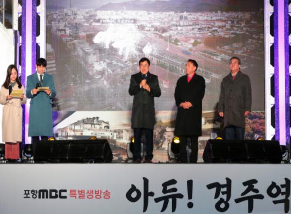 경주시는 28일 오후 5시 30분 경주역 광장에서 폐역을 기념하는 ‘Adieu! 경주역의 기적’을 개최했다. (재)경주문화재단이 주관한 이날 행사는 주낙영 시장을 비롯해 김석기 국회의원, 서호대 시의회 의장과 시민 대표 등 시민 200여 명이 참석해 경주역의 영업종료를 아쉬워했다.