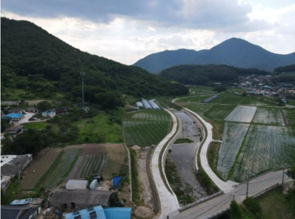 특히 집중호우와 최근 자주 발생하는 돌발홍수에 취약한 690m 구간에 ‘80년 강우 빈도’에 맞춰 새로이 제방을 정비하고, 취입보 3개소와 연결 농로 1,079m의 포장 공사를 완료했다.