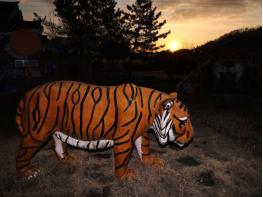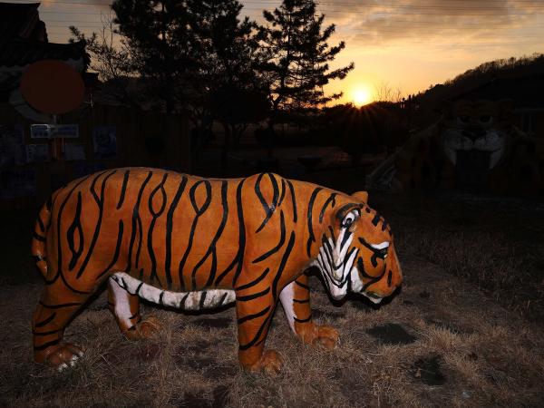 임인년(壬寅年)을 사흘 앞둔 지난 29일 전남 강진군 성전면 농촌체험마을인‘청자골달마지마을’호랑이 조형물 위로 상서로운 기운을 가득 담은 붉은 해가 떠오르고 있다.