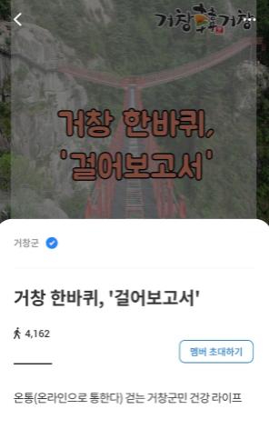 거창군은 한 해 동안 추진한 비대면 걷기사업 ‘워크온’ 참여자를 대상으로 4일간 실시한 온라인 만족도 조사에서 올해 최고의 비대면 건강증진사업으로 호평을 받는 등 만족도가 높은 것으로 평가됐다.