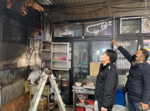 화재는 튀김 찌꺼기를 수거한 플라스틱 통에서 발화된 것으로 추정되며 인근 상인 2명이 화재를 목격하고 점포 인근에 소화기를 사용해 초기 진화에 성공하여 인근 가게들로 연소 확대를 막았다.