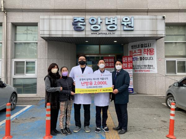 화순군 도곡면 행정복지센터는 지난 27일 화순중앙병원이 어려운 이웃의 따뜻한 겨울나기를 지원하기 위해 난방유 2000ℓ(200만 원 상당)를 기탁했다고 밝혔다.