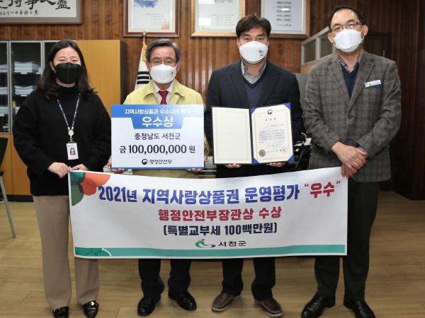 서천군은 행정안전부가 주관한 ‘2021년 지역사랑상품권 우수사례 평가’에서 행정안전부장관상 수상과 함께 특별교부세 1억원을 인센티브로 확보했다고 전했다.