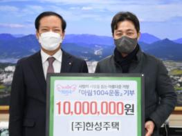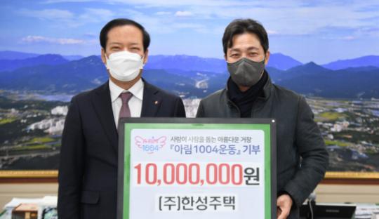 거창군은 지난 28일 ㈜한성주택 유한성 대표가 아림1004후원금 1천만 원을 기탁했다고 밝혔다.