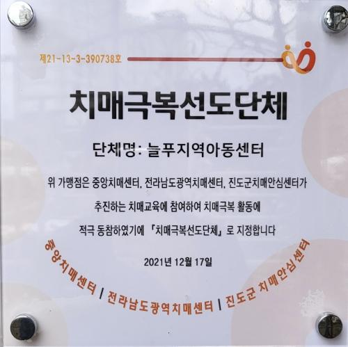 진도군치매안심센터가 늘푸른지역아동센터를 ‘치매극복 선도단체’로 지정하고 치매 인식 개선을 위해 적극 협력해 나가기로 했다.