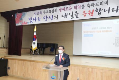 박종훈 교육감은 “탁월한 역량과 경륜을 마음껏 펼치고, 무거운 소임을 명예롭게 내려놓는 퇴임에 자부심이 가득할 것이다.”라면서, “임 부교육감이 함께 만들어 주신 굳건한 토대 위에서 새로운 시대를 여는 경남교육이 만들어지고 있음을 잊지 않을 것이다.”라고 말했다.