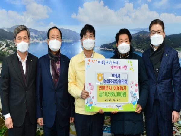 NH농협 거제시 농협조합장협의회(의장 원희철)에서는 지난 27일 연말연시를 맞아 어려운 이웃을 돕기 위해 이웃돕기 성금 10,565,000원을 거제시에 전달했다.