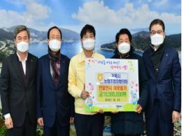 변광용 시장은 “어려운 시기에도 불구하고 소외된 이웃을 잊지 않고 나눔을 실천해 주신 조합장님들께 감사드린다”며 “따뜻한 마음이 전해질 수 있도록 도움이 필요한 곳곳에 소중히 전달하겠다”고 말했다.