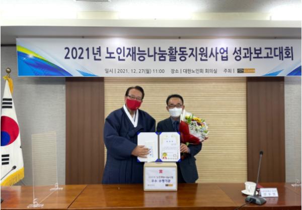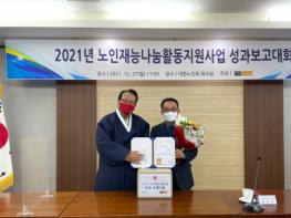 거창군은 대한노인회 거창군지회가 2021년 12월 27일 대한노인회 중앙회에서 실시한 2021년 노인재능나눔활동지원사업 성과보고대회에서 최우수기관 대한노인회장 표창을 받았다고 밝혔다.