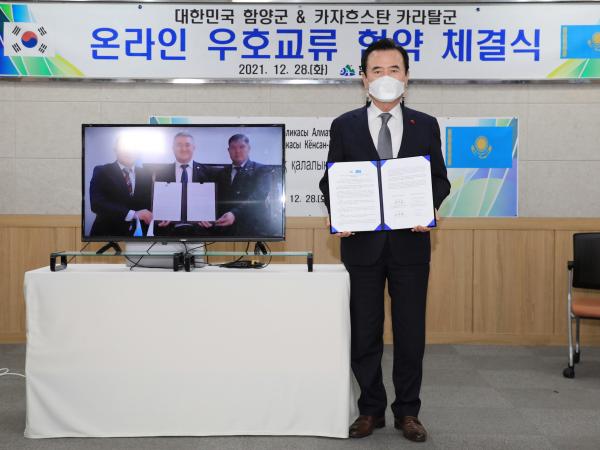 함양군은 지난 12월 28일 군청 소회의실에서 카자흐스탄 카라탈군과 온라인 우호교류협약을 체결하고 상생 발전을 위한 협력을 약속했다.