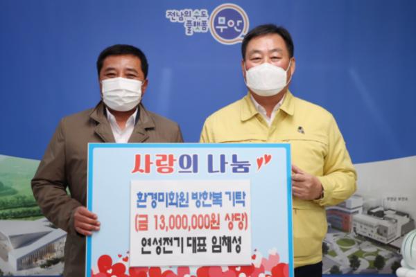 무안군은 지난 28일 ㈜연성 임채성 대표가 환경미화원에게 전달해달라며 1300만원 상당의 방한복 87벌을 기증했다고 밝혔다.
