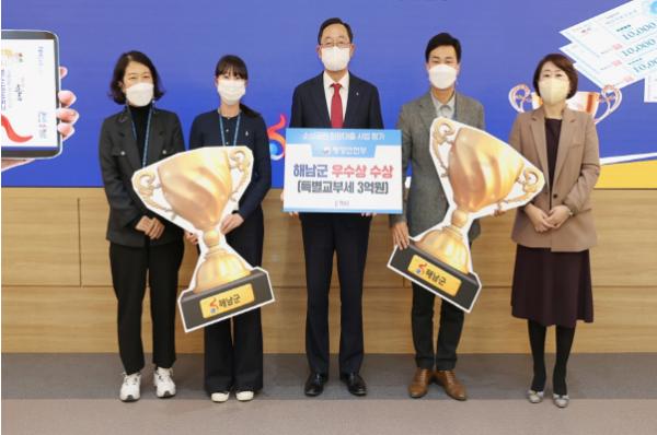 해남군이 행정안전부 주관‘지역 소상공인 희망대출 지원사업 평가’에서 우수상을 수상하여 특별교부세 3억원을 확보했다.