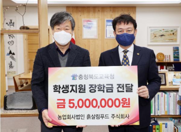 충청북도교육청과 농업회사법인 흙살림푸드 주식회사는 12월 29일 교육감 집무실에서 장학금 전달식을 가졌다.