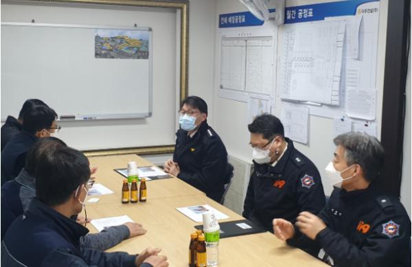 이날 지도 방문에서는 화기 취급 작업 시 화재로 인한 피해 저감을 위해 ▲ 임시 소방시설 유지 관리 상태 ▲ 위험물 안전관리 상태 ▲ 화재감시자 배치 여부 등을 중점적으로 확인하고 관계자들과 함께 화재 시 초기 진화 방법 등에 대한 논의가 이루어졌다.