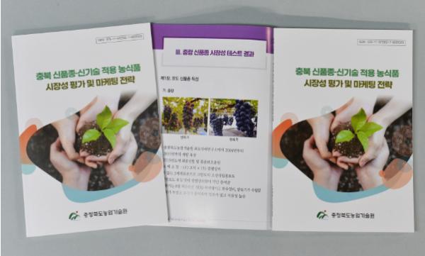 충북농업기술원은 새로 개발한 신품종과 신기술을 적용한 농식품에 대해 시장성 평가에 따른 상품화 방향 등 마케팅 정보를 엮은 '충북 신품종 · 신기술 적용 농식품 시장성 평가 및 마케팅 전략' 전문서를 발간했다.