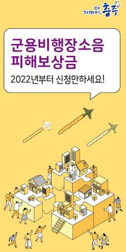 충주시는 2022년 1월부터 ‘군용비행장?군사격장 소음방지 및 피해보상에 관한 법률’에 따른 군소음피해보상 제도가 본격 시행됨에 따라 소음대책지역의 군소음피해보상금 신청서를 접수한다고 30일 밝혔다.