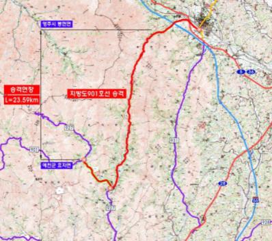 예천군 군도1호선인 은풍면 우곡리~효자면 고항리 구간이 지방도 901호선으로 승격됐다.