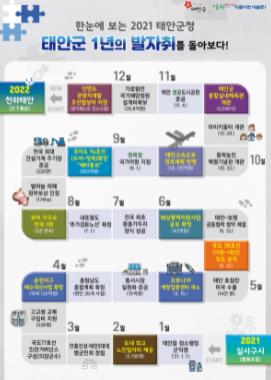 군 관계자는 “태안군은 전국에서 가장 살기 좋은 지자체로 거듭나기 위한 노력을 게을리하지 않을 것”이라며 “다가오는 임인년 새해에도 군정에 많은 관심과 애정을 부탁드리며, ‘모두가 잘 사는 새태안’ 건설을 위해 힘차게 나아가겠다”고 말했다.