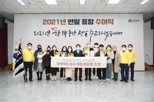 고윤환 문경시장은 29일 연말시상식을 통해 표창장을 전수하며, “문경 청년들의 지역을 아끼고 사랑하는 진정성 있는 노력이 대통령상 수상이라는 값진 결과를 이루어냈다.”고 축하의 뜻을 전하며, “앞으로도 청년이 살기 좋은 도시로의 입지를 확고히 하기 위해 청년의 유입과 정착을 위한 다양한 시정을 펼쳐 보이겠다.”고 밝혔다.