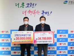연말을 맞아 각계각층의 기부 참여가 어느 때보다 활기를 띄는 가운데 12월 29일(수) 대구경북주물협동조합에서 고령군청을 방문하여 교육발전기금 3,000만원과 이웃돕기성금 3,470만원을 기탁하였다.