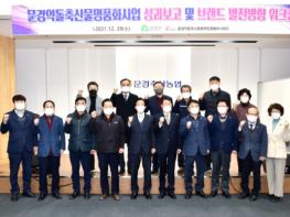 문경시 문경약돌축산물융복합명품화사업단은 29일 문경약돌축산물종합유통센터에서 고윤환 문경시장을 비롯해 시의회, 운영위원, 실무추진단, 사업단 등이 참석한 가운데 ‘문경약돌축산물융복합명품화 사업성과 보고회 및 브랜드 발전방향 워크샵’을 개최하고 그간의 사업 성과에 대한 보고와 성과를 토대로 향후 나아갈 비전을 발표했다.
