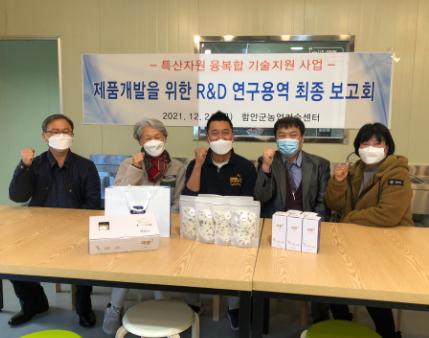 함안군에서 생산되는 친환경 농산물인 쌀, 콩, 야채 등을 이용한 선식 3종(이용식용, 노인식용, 일반식용) 개발에 따른 배합, 제조, 포장, 유통방법에 대한 연구 및 원재료 전처리에 대한 연구결과를 공유했다.