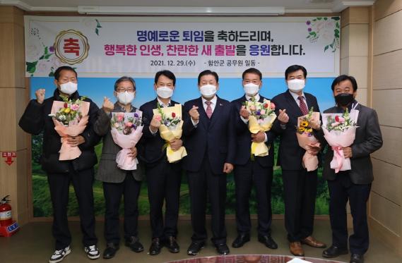 함안군은 지난 29일 오후 3시 군수실에서 2021년 하반기 퇴직공무원을 대상으로 재직기념패 수여식을 열었다.