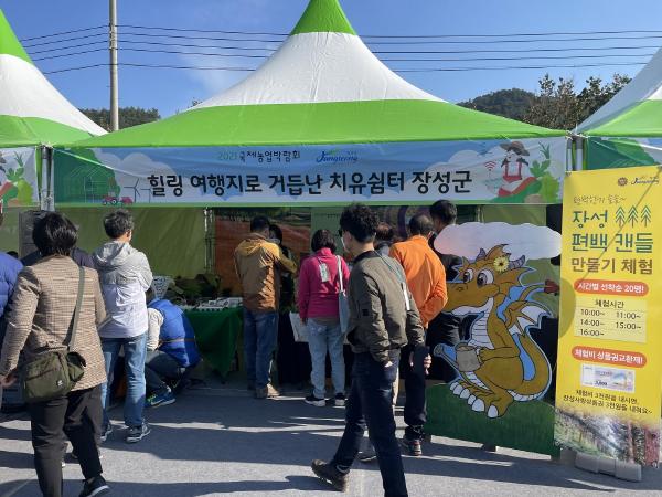 이번 평가에서 장성군은 홍보?판매관의 성공적 운영에서 높은 점수를 받았다. 장성군농업기술센터는 ‘힐링 여행지로 거듭난 치유쉼터 장성군’이라는 테마로 편백을 활용한 농?특산물을 선보이며 친환경생태도시 장성군을 홍보해 관광객들로부터 큰 호응을 얻었다.