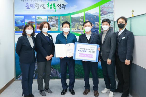 성주군은 전국 지방자치단체를 대상으로 한 2021년 지방규제혁신 역점분야별 우수기관으로 선정되었다.