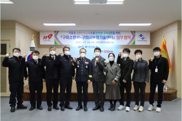 소방서에서 진행된 업무협약에는 구미시농업기술센터소장과 구미소방서장 등 12명이 참석한 가운데 안전사고 예방 등 공동협력체계 구축을 통해 피해를 최소화시키기 위해 추진됐다.