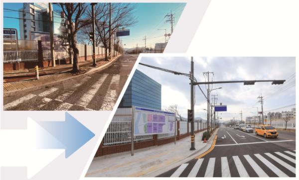 작년 12월부터 시작된 본 공사는 교차로구간을 기존 2차로에서 3차로로 확장하는 것을 중심으로 설계되었으며, 인근 근로자들이 많이 이용하는 택시승강장 공간을 추가 설치하고 노후화된 보도블럭을 교체하는 등 인근지역 교통편의 제공에도 기여할 것으로 기대된다.