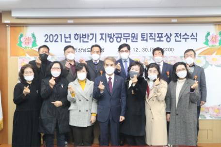 경상남도교육청은 12월 30일 오전 10시 본관 2층 중회의실에서 퇴직포상 수상자 대표 12명이 참석한 가운데 2021년 하반기 지방공무원 퇴직포상 전수식을 가졌다.