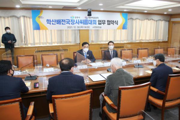 창원시는 30일 오후 2시 시정회의실에서 창원씨름(舊 마산)을 널리 알리고 씨름의 활성화를 도모하기 위해 대한씨름협회와 업무협약(MOU)을 체결했다.