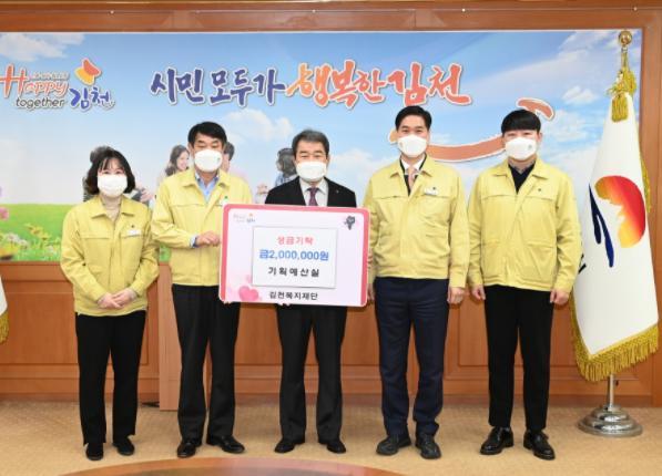 김천시 기획예산실에서는 30일 지역사회복지 증진을 위해 김천복지재단에 2백만 원의 기부금을 전달했다.