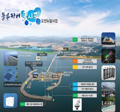 블루 에너지 분야에는 태양광 발전시설, 전기선박 충전소, 전기자동차 충전소 등을 조성한다.