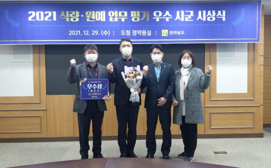화순군이 전남도 주관 ‘2021년 식량원예 평가’에서 우수상을 받았다.